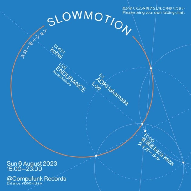 Ambient party "SLOWMOTION" by AOKI takamasa,ENDURANCE,Loe. The 4th event will be held with Kohei as the guest.