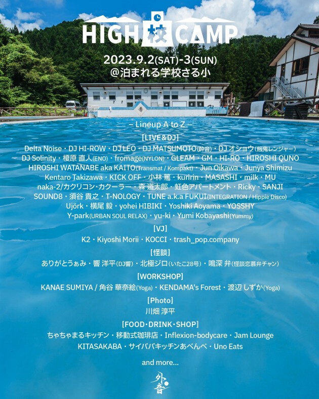 林間学校型音楽フェスティバル『HIGH校CAMP』が、群馬県の廃校となった小学校をリノベーションしたユニークな会場『泊まれる学校さる小』で今年も開催!