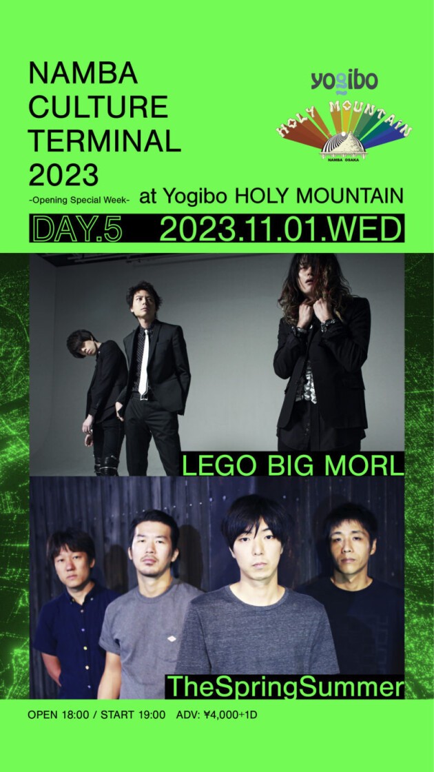 大阪・なんばにオープンする新たなライブハウス、「Yogibo HOLY MOUNTAIN」のこけら落とし公演「Namba Culture Terminal 2023 -Opening Special Week-」が10月28日から11月3日にかけて開催決定!