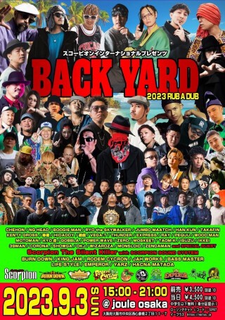 BACK YARD 2023 2023.9.3(SUN) OPEN 15:00-21:00 当日¥4,500(別途1D) 前売り¥3,500(別途1D)