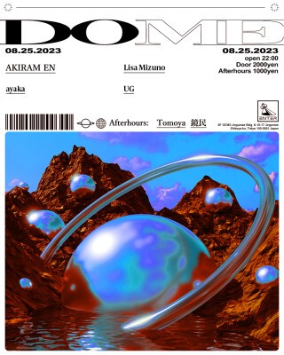 トランスやテクノディープリスニング、ダンスミュージックを個々の視点で解釈する、フロア主義の実力派DJを招いてきたDome。3回目となる今回はフロアを常に意識したエッジーなダンスセットからディープなリスニングセットまで、深い知覚を目覚めさせる音楽体験をフロアにもたらすAKIRAM ENが初登場。常に張り巡らしているフロアに対する意識ゆえにドープなパーティヘッズから支持されているDJであり、先鋭的でインディペンデントな現場でのディープリスニングパーティでの選曲家としての一面は世界中のディガーの目に留まっている。来日アーティストの招聘、国内有数の野外フェスへの出演と、音楽を取り巻く様々な現場での経験値で毎度新鮮な音楽体験をもたらしてくれる彼と共演するのは、無骨で重圧な音色からは想像できないくらい繊細なプレイでフロアを巻き込むayaka、世界のパーティシーンに実際触れてきた経験から生み出されるヒプノティックかつ実験的、潜在意識へのアプローチを図る選曲とコンセプチュアルな世界観で催眠的な異空間を創り出すLisa Mizuno、ENTERのブッカーであり、東京アンダーグラウンドに生息するクラバー達が秘密を共有するかのように集い、熱狂的な一夜を過ごす松果体を主催し、コンクレートやドローンなど物音をレイヤリングしながら一貫した哲学を軸に自由自在に音像をミックスするUG。