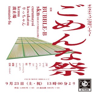 DJ : BUBBLE-B / skn (HEAVYMELLOW) / curumayoi / kawakatsu (HONESTY/BUG) / りっちゃん / けむ / 波止場 / tomato-fu (A to Z)