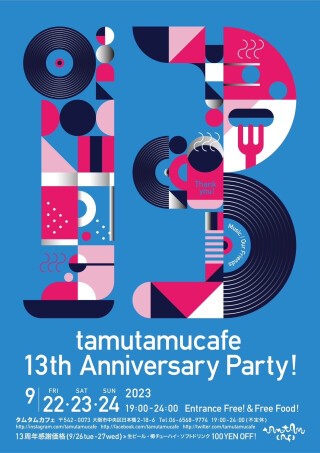 2010年9月25日に"おいしいおと。おいしいごはん。"をコンセプトにオープンして今年でタムタムカフェはなんとか無事に13周年を迎えます。日常が日常でなかった4年間、しんどい時も楽しい時も、どうにか13周年を迎えられるのはいつも周りの皆さんのおかげです。皆様に大感謝の4年ぶりのFree Party & Free Food復活です!周年は私たちにとって、いつもありがとうの方、久しぶりの方、初めましての方、全てのお客様への感謝デーです。いつも快く引き受けてくれるDJの皆さん、最高のデザイナーのアヤさん本当にありがとうございます。タムタムカフェから少しでも恩返しができれば幸いです。お時間が合えば来てくださいね!