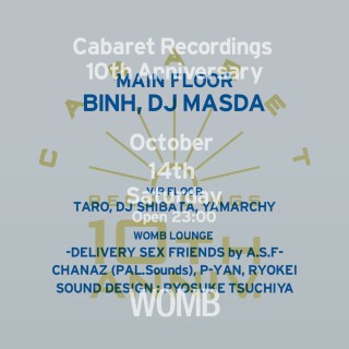Cabaret Recordings, a Berlin-based label organized by dj masda and So Inagawa, celebrates its 10th anniversary in 2023. To commemorate this event, an anniversary party will be held at WOMB for three consecutive months.