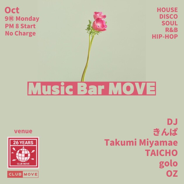 DJ BAR営業のこの日はMOVE界隈の様々なメンバーがプレイします。