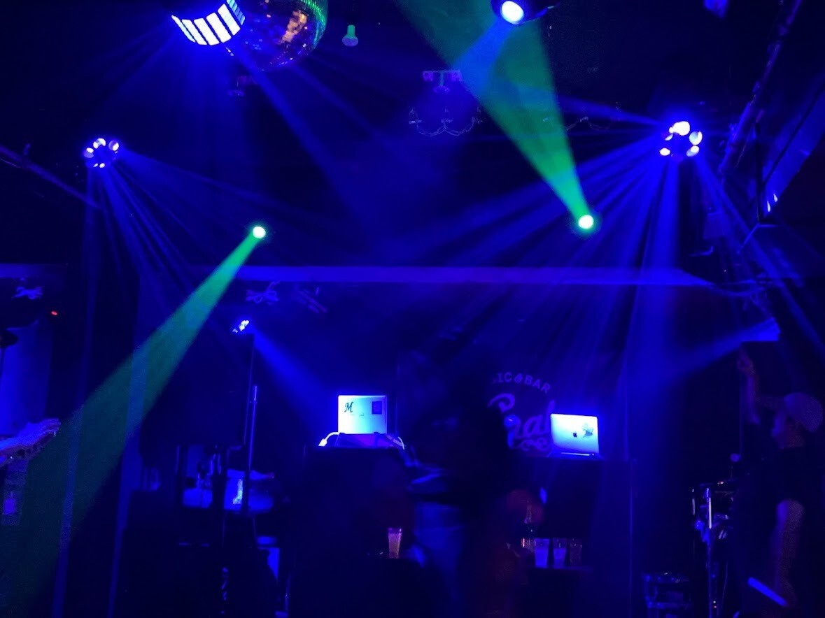 Sound system, lighting, etc. set up for HOUSE MUSIC. HOUSE MUSIC event from Akabane to the world.