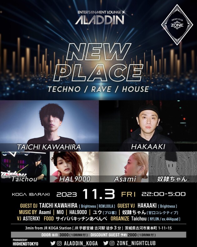 キャパシティ500人収容可能なフロアに、ageHa特設巨大ステージ、Wharfedaleラインアレイ音響が施された非現実空間に硬派な音で勝負すべくTechno / Houseを中心としたパーティ【 NEW PLACE】