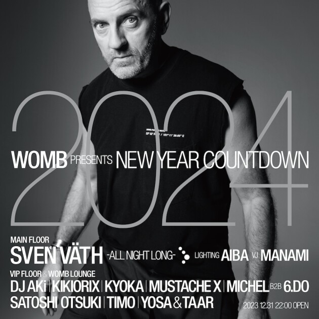 On New Year’s Eve, a festive night to close out 2023 and ring in the New Year, the one and only professional Sven Väth, who continuously receives love calls from all over the world, will be performing from open to last! Welcome the New Year joyfully with Sven's all night long set!