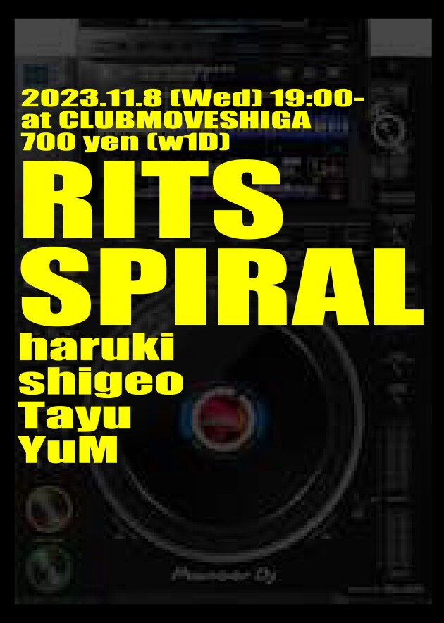 「Rits Spiral」は毎月第二水曜日に開催されている、立命館大学のDJサークル「立命館テクノ部」によるオールジャンルイベントです。