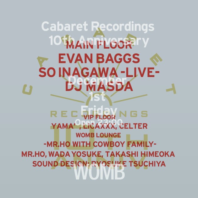 ベルリンを拠点とする日本発のレーベル、Cabaret Recordings が2023年で10周年を迎え、これを記念し WOMB にて3ヵ月連続のアニバーサリーパーティーが開催。