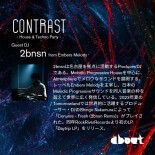 CONTRASTは11/24(金)開催! Progressive Houseの巨匠 Shingo Nakamura氏より1目置かれる、プロデューサー 2bnsnを招き開催! プログレッシブを中心に、DEEPで幻想的なHOUSE回! 名古屋で注目のプロデューサーを見逃すな!