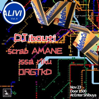 アップリフティングなハウスミュージックをかけるr1kuによるALIVIの4回目。ニューヨークよりDJiboutiを招聘し、MOMOオーガナイザー、岩壁音楽祭主催メンバーであるscrab、美容室LECOのスタイリスト兼DJのAMANE、名古屋を拠点に活動するORGTKD、ブレイクビーツ、ガラージを得意とするissaが出演する。