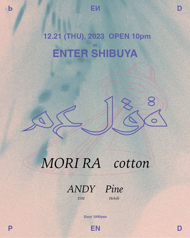 PineとANDYが主宰するPEND。第4弾は大阪を拠点に国内外で活躍し、今年9月には〈Sound Metaphors〉から素晴らしいミックスをリリースしたMori Ra氏、岡山から長野、そして現在東京に拠点を移したばかりのレコードディガーcotton氏を招聘。