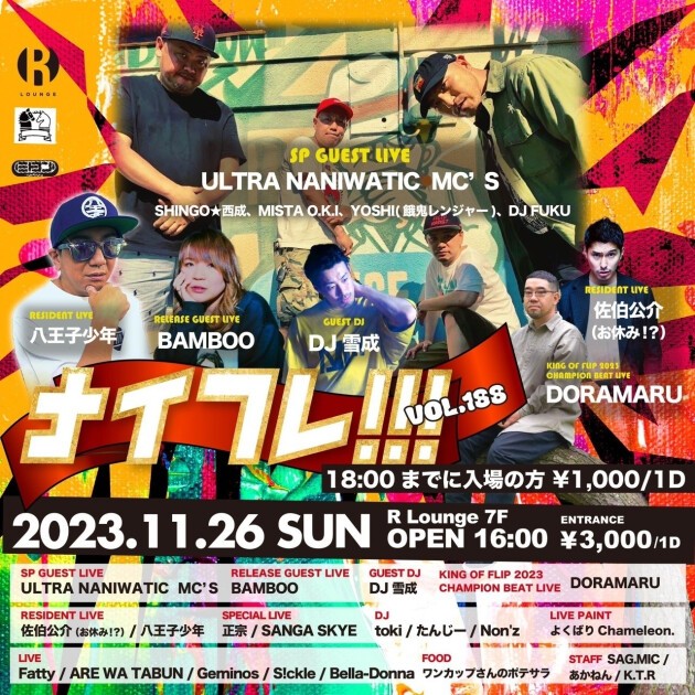SP GUEST LIVE : ULTRA NANIWATIC MC’S (SHINGO★西成, MISTA O.K.I, YOSHI , DJ FUKU)