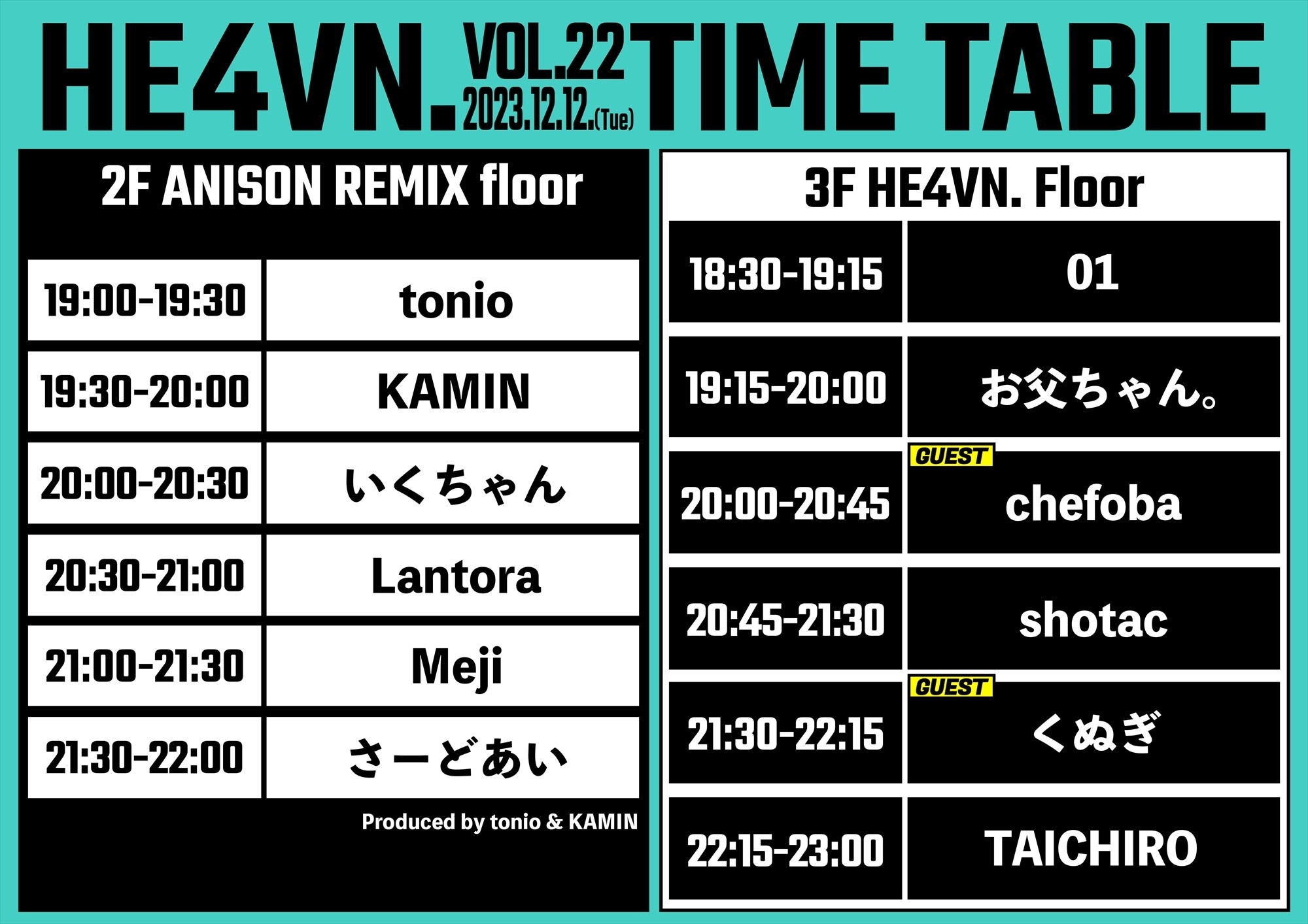 「HE4VN.」レギュラーDJのtonioと、「ANI-RIMI-BU! - アニリミ部!-」オーガナイザーのKAMINが贈る特別企画。