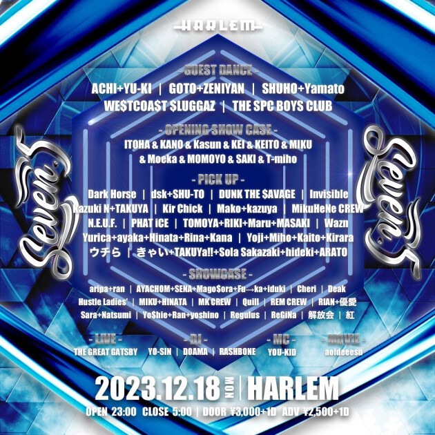 SHOWCASE (AtoZ): aripa+ran, AYACHOM+SENA+Mago$ora+Fu→ka+iduki, Cheri, Deak, Hustle Ladies’, MIKU, HINATA, MK CREW, Quill, REM CREW, RIAN+優愛, Sara+Natsumi, Yo$hie+Ran+yoshino, Regulus, ReGiNa, 解放会, 紅