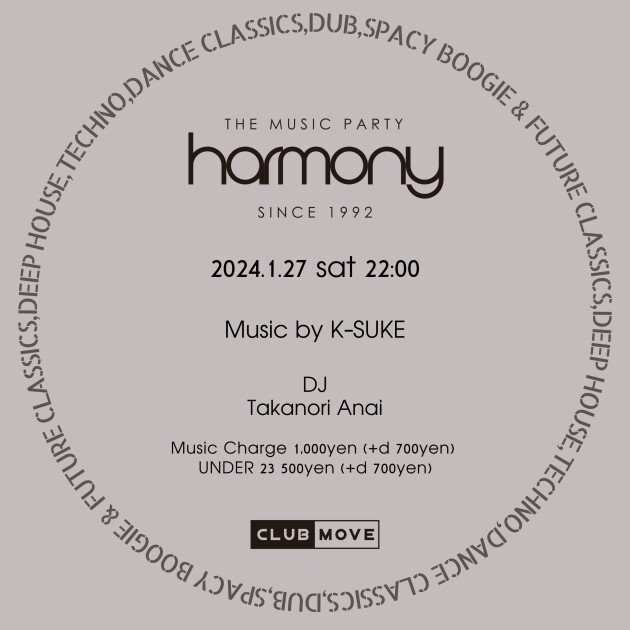 2024年最初のHARMONYはK-SUKEとTakanori Anaiの2マンで音届けいたします。