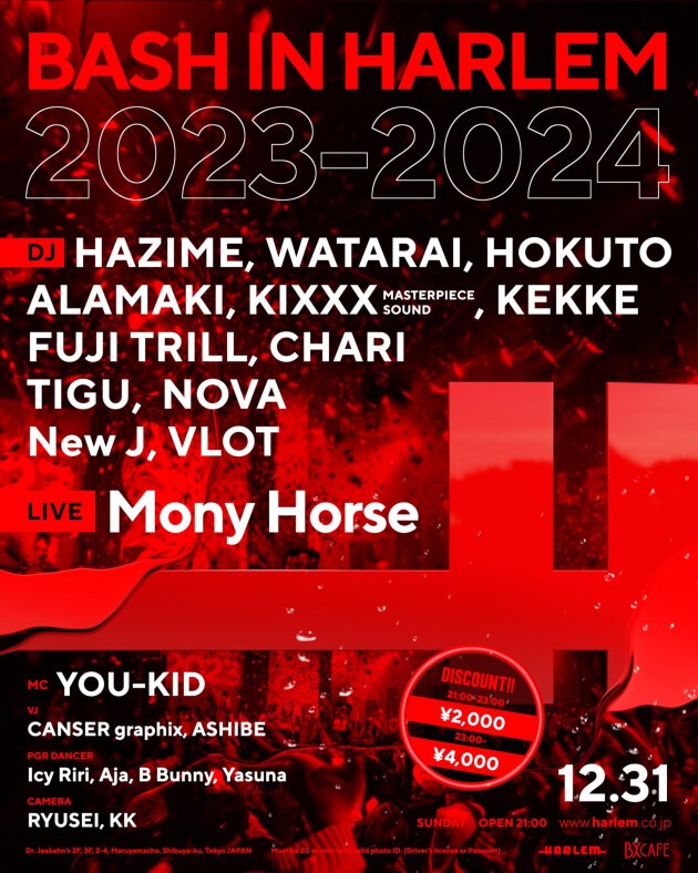 DJ: HAZIME, WATARAI, HOKUTO, ALAMAKI, KIXXX (MASTERPIECE SOUND), KEKKE, FUJI TRILL, CHARI, TIGU, NOVA, New J, VLOT