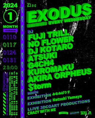 FUJI TRILLをはじめ多方面に活躍するDJ,BeatMakerが毎週水曜渋谷の夜をにぎわす通称"エクソ"。LIVE TATTOO、PAINT 、EXHIBITIONも隔週でcheck。外国からのお客様は入場フリー!!是非お越しください!!