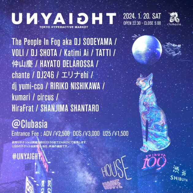 この度、老舗クラブエイジアで秘密から解き放たれた UNYAIGHT は ミッドでナイトなパーティーを存分に展開させていただきます。