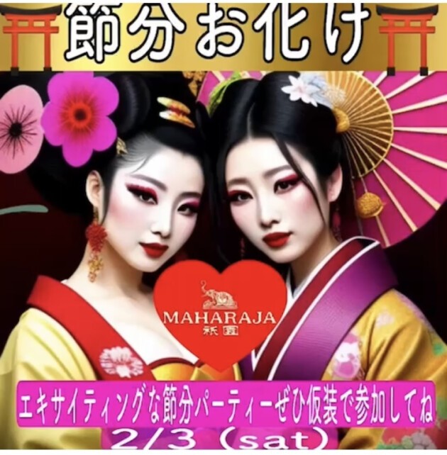 京都の歴史ある伝統行事♪ ぜひ仮装で参加しよう 殿や姫、奉行や花魁はもちろん洋風仮装も歓迎です エキサイティングな節分お化けpatyぜひ参加してね 仮装の人も仮装じゃ無い人も皆んなで踊り楽しみ福を招こう!