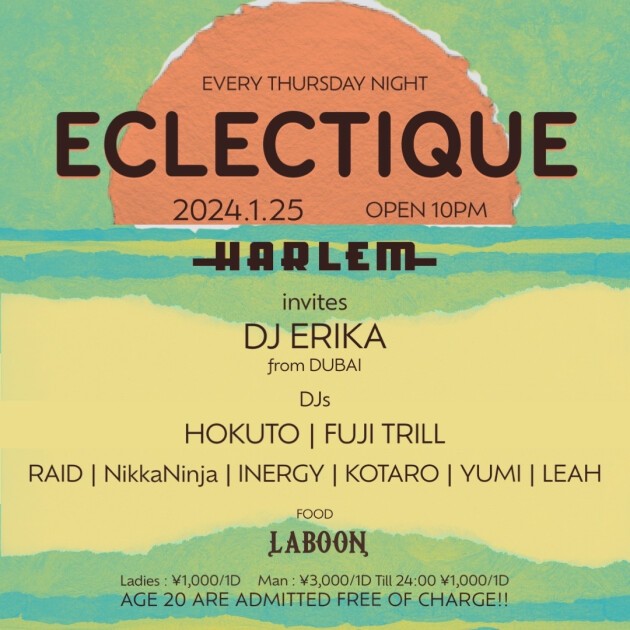 DJ: HOKUTO, FUJI TRILL, RAID, NikkaNinja, INERGY, KOTARO, YUMI, LEAH