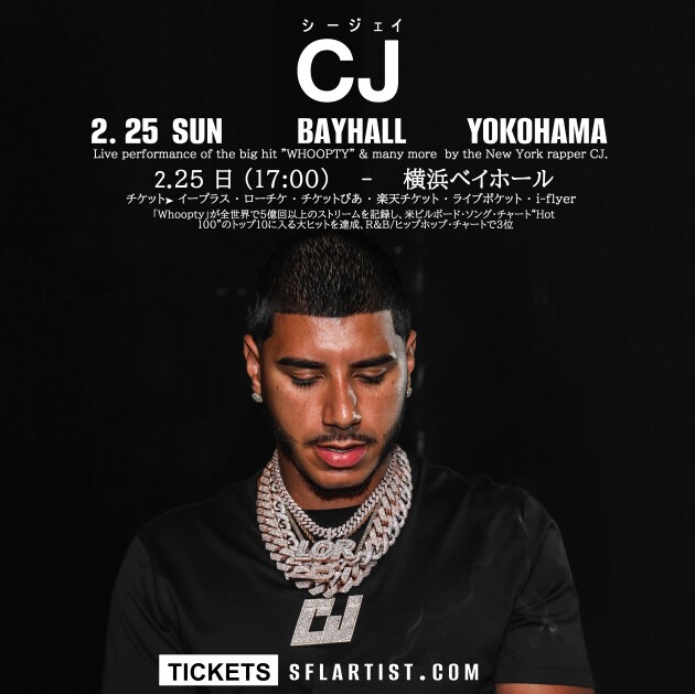 Feb. 25 (Sun, 17:00~) - Live Performance of the Big Hit #whoopty by New York Rapper CJ at YOKOHAMA BAYHALL.