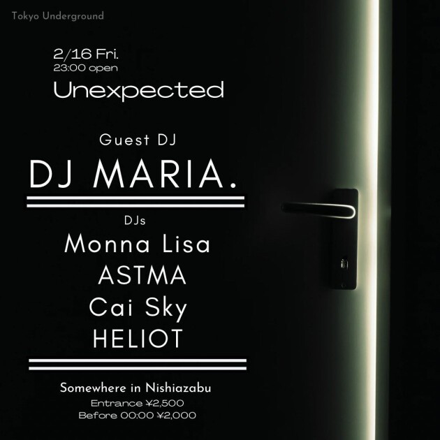 In addition, other DJs who are passionate about all aspects of Tokyo's dance music scene and expanding their activities are all lined up to create an UNEXPECTED space.