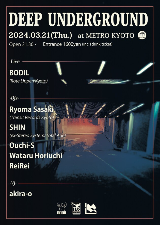 電気グルーヴのオープニングアクト等、精力的にクラブ・ライブハウスで活動を続け、アルバム「KÖRPERKOMPLEX」も好調なライブアクト 『BODIL』、Tresor.Berlin、Renate、Ipse、Golden Gate 等々、ベルリンのテクノ・ハウスのトップ・クラブに出演、2007年よりコンスタントに楽曲をリリースする 『Ryoma Sasaki』、京都をベースに長年にわたり活動し、Juan Atkins、Santiago Salazar、DJ3000 等のデトロイト勢のアーティストの招聘するなど京都のシーンを堅実に牽引してきたDJである『SHIN』をはじめとしたレギュラー陣が出演します!