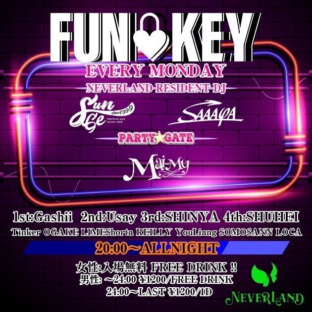Fun︎Key will be happening at Neverland, catering to those who seek enjoyment starting from Monday!!