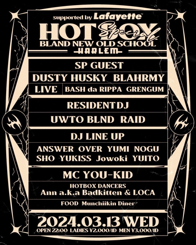DJ: Ryo-hey, TSUHAKO, TATSUYA, Mitsü, MOTOMICHI, YANA, MANJI, GASHIII, LEEK, Nes$ Psaro, BEN, はだっち, shosho