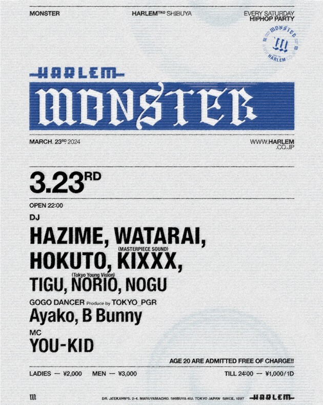 DJ: HAZIME, WATARAI, HOKUTO, KIXXX(MASTERPIECE SOUND), TIGU, NORIO(Tokyo Young Vision), NOGU