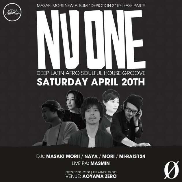 現在Deep, Afro, Soulful Houseシーンにおいて飛ぶ鳥を落とす勢いと言っても過言ではない活躍を見せ、Louie Vega, Frankie Feliciano, Ron TrentなどのレジェンドDJをはじめ、数多のDJによって世界中のフロアでヘビープレイされている、今最も注目すべき日本人HouseプロデューサーMasaki Moriiによるパーティー"Nu One"がローンチ。今回は自身の2ndアルバム"Depiction 2"のリリースパーティーも兼ねてAoyama Zeroにて開催。