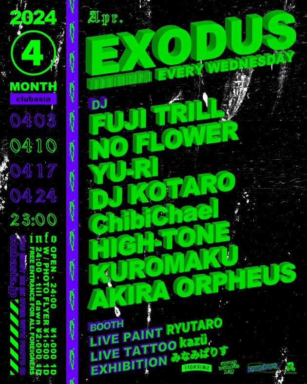 FUJI TRILLをはじめ多方面に活躍するDJ,BeatMakerが毎週水曜渋谷の夜をにぎわす通称"エクソ"。