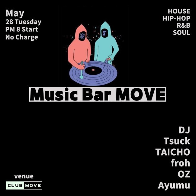 DJ BAR営業のこの日はMOVE界隈の様々なメンバーがプレイします。