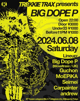 ロンドンを拠点に活動するパリ出身のプロデューサーBig Dope Pは自身のレーベルMoveltraxxとともに、その名を世界中に知られている。ゲットー・テック/ハウスやジューク、フットワークやエレクトロファンクを中心としたプロデューサーで、そのDJセットは、ユニークなベースライン、リスナーの想像を越えるテクニカルでウィットに富んだ展開の連続で、ディープさとともに最高にヒップな体験を味わうことができる。