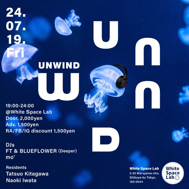 渋谷のアンダーグラウンドVenue @White Space Labでのディープハウスパーティ ”UNWIND” 心地良いディープハウスを軸にOrganic house / Downtempo, deep tech, electronica, ambientなどクロスオーバーにバレアリック、レフトフィールドスタイルとして新しさと実験的且つモダンなサウンドを心地良く体感できるディープハウスパーティ”UNWIND”