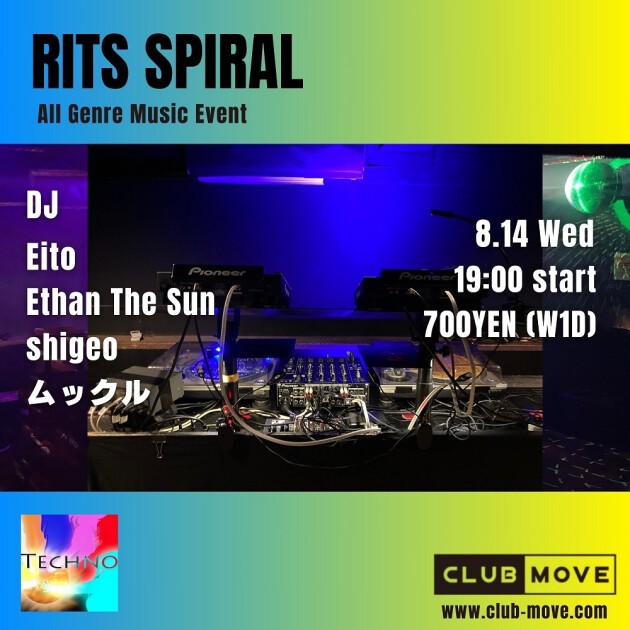 「Rits Spiral」は毎月第2水曜日に開催されている、立命館大学のDJサークル「立命館テクノ部」によるオールジャンルイベントです。