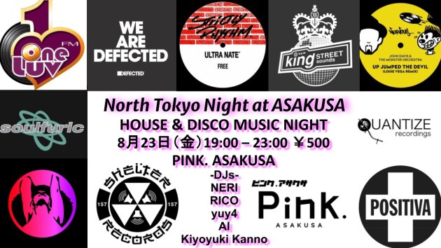 NORTH TOKYO NIGHT, the familiar HOUSE MUSIC PARTY at Akabane Enab, finally comes to Asakusa PINK!