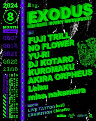 ✺ FUJI TRILLをはじめ多方面に活躍するDJ , BeatMakerが毎週水曜の渋谷の夜をにぎわす通称 " #エクソ "。LIVE PAINT, LIVE TATTOO, EXHIBITIONも隔週でcheck。