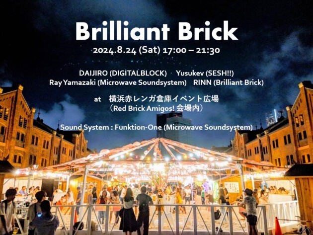 This time, 'Brilliant Brick' will be part of Yokohama Red Brick Warehouse’s summer tradition, 'Red Brick Amigos! 2024,' featuring a DJ booth and the world-class sound system 'Funktion One.'