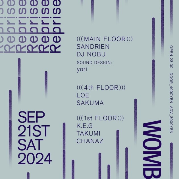 Sandrien, recognized as one of Amsterdam's best techno DJs, has been confirmed to perform. Her B2B set with DJ Nobu at the 2022 Rainbow Disco Club has become a signature feature across Europe, widely celebrated since that event. (Be sure to check it out on RDC's SoundCloud!) Additionally, the main sound design will be handled by Yori, an indispensable presence at every Reprise event.