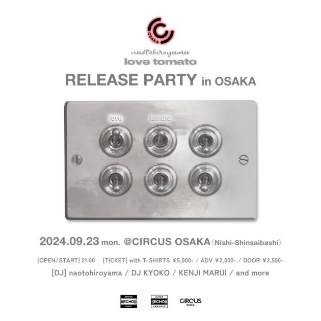 既に決定している9月15日の東京・中目黒HVƎNでのリリースパーティーに続き、9月23日にも大阪・CIRCUS OSAKAにてリリースパーティーの追加公演が開催決定。 東京・大阪の両会場で、リリースを記念したnaotohiroyamaによるDJパフォーマンスをぜひ体感せよ。