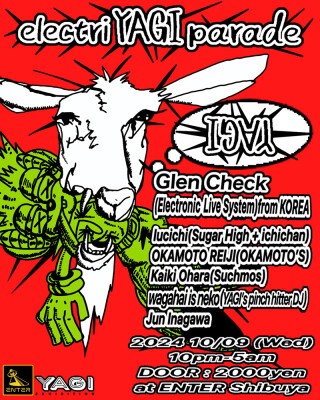 オカモトレイジ(OKAMOTO'S)主宰のYAGI EXHIBITIONが、 韓国のオルタナティヴ・エレクトロバンドGlen Checkの来日クラブイベントをサポートする。 2011年にデビュー後、2年連続で韓国のグラミー賞とも呼ばれる韓国大衆音楽賞の最優秀ダンス・エレクトロニック・ミュージック賞を受賞。2012年と2013年にはサマーソニック、そしてフランスのNuits sonoresやアメリカのSXSWなど世界各国のフェスへの出演を果たし、2015年には渋谷WWWでのワンマンライブを成功させた。さらに「Dazed & Confused」が2024年7月からNETFLIXで配信が開始された日本初の男性同士の人気恋愛リアリティショー「ボーイフレンド」の劇中歌に起用されたことでバイラルヒットとなり、日本でも根強い人気を誇っているGlen Checkの来日クラブイベントをオカモトレイジ(OKAMOTO'S)主宰のYAGI EXHIBITIONで開催する。 YAGI DJには、コアメンバーである現在絶賛47都道府県ワンマンライブツアー中のオカモトレイジ(OKAMOTO'S)、11月の作品集リリースに大忙しのJUN INAGAWA、現在最も勢いのあるecec、Sugar HighとichichanによるDJユニットlucichiに加えSuchmos DJ Kaiki Oharaによる"Electric Ginger Fuzz set"でのプレイが決定。