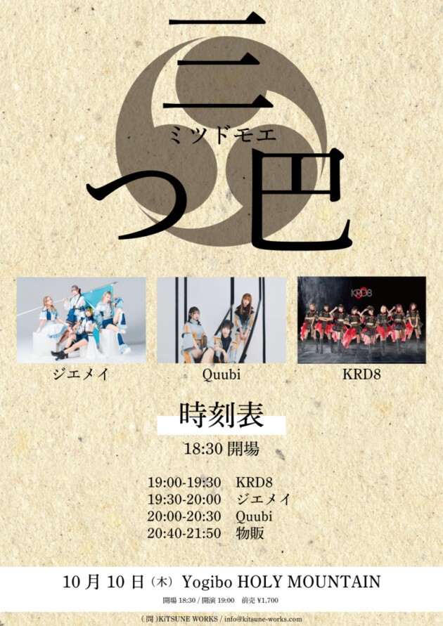 ACTS: Quubi / ジエメイ / KRD8 TICKET: eplus 9/11(水)21:00~ 発売開始 https://eplus.jp/mitsudomoe