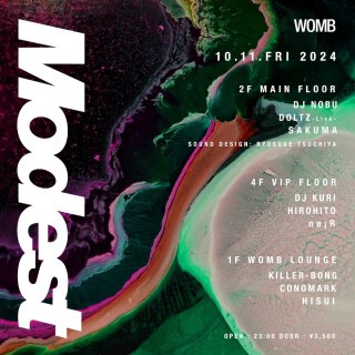 1F Womb lounge will feature Killer-Bong, head of the label Black Smoker and known for releasing music under various aliases including K-Bomb and The Lefty. DJ Conomark, who seamlessly blends funk, hip-hop, and jazz to captivate music fans across Japan, and Hisui, active in both his hometown Aizuwakamatsu and Tokyo clubs, will also perform. Each artist promises to deliver a set brimming with their unique originality.