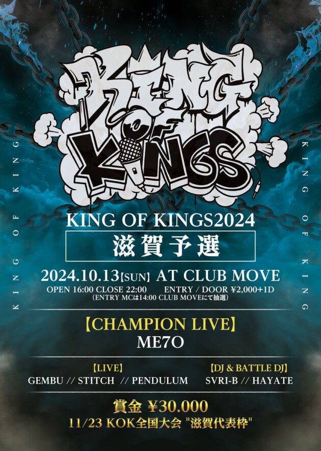 This year, the KING OF KINGS 2024 Shiga Preliminary will be held. Rappers who have yet to be seen and those who have made their mark will all mix together to reach the top.