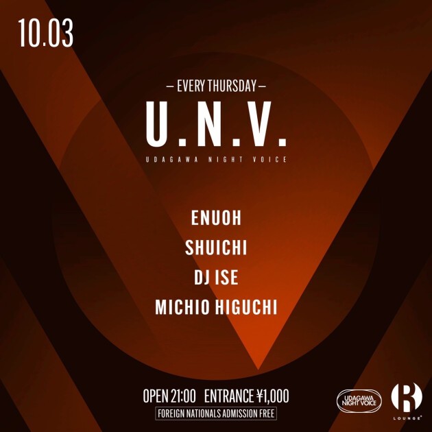 UDAGAWA NIGHT VOICE (U.N.V.), a night party every Thursday.
