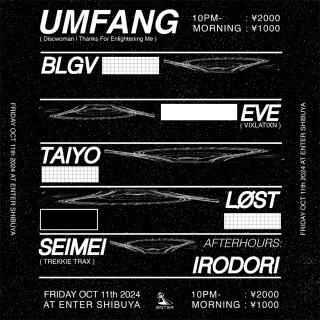 此度2年ぶりに来日するディスクジョッキーUMFANGと、東京のアンダーグラウンドシーンを牽引するDJ コレクティブ MUSTANGの創設者 BLGV、先日ヨーロッパツアーを終えた、ハードテクノパーティ兼レーベル VIXLATIXN の主宰EVE、メタルやテクノ、ロックをルーツに、ハードテクノやハードコア、インダストリアルをはじめとしたエレクトロを軸に活動しているTAIYOが共演。