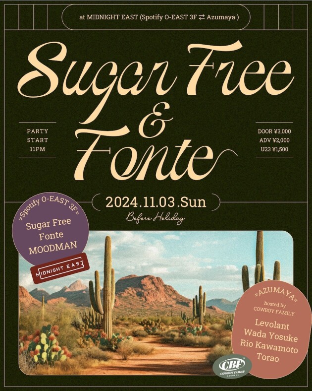 前売りチケット:https://midnighteast.zaiko.io/e/sugarfree-and-fonte